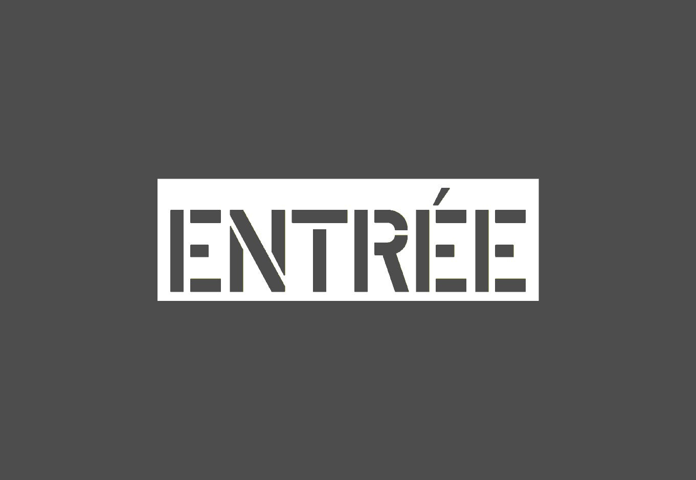 "Entrée" stencil in durable 1/16" HDPE. Approximate 2" overspray allowance on all sides.